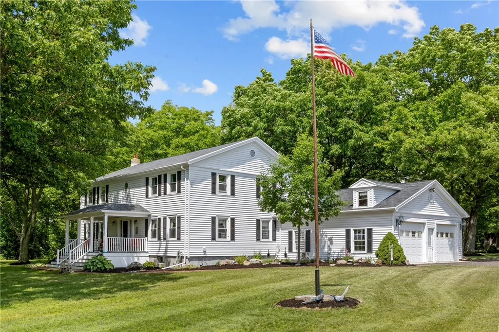 Amazing Homestead located on 70.5 acres w 10 acres of that being tillable. Home is a 2-story colonial with open 2 story grand foyer. Living room, family room, granite countertop kitchen, formal dining room, breakfast room overlooking scenic back yard, 3 bedrooms, 3 bathrooms, and first floor laundry. Full walk out basement for lots of storage, and a 2-car attached garage. 2 heat sources for the baseboard hot water heat, one being wood and the other is propane. Out buildings are workshop/ Maintenace shop, and big pole barn. Land is made up of 10.5 acres open tillable, 10 pines and 40 +/- hardwoods. Don't miss out on this beautiful piece of property.
