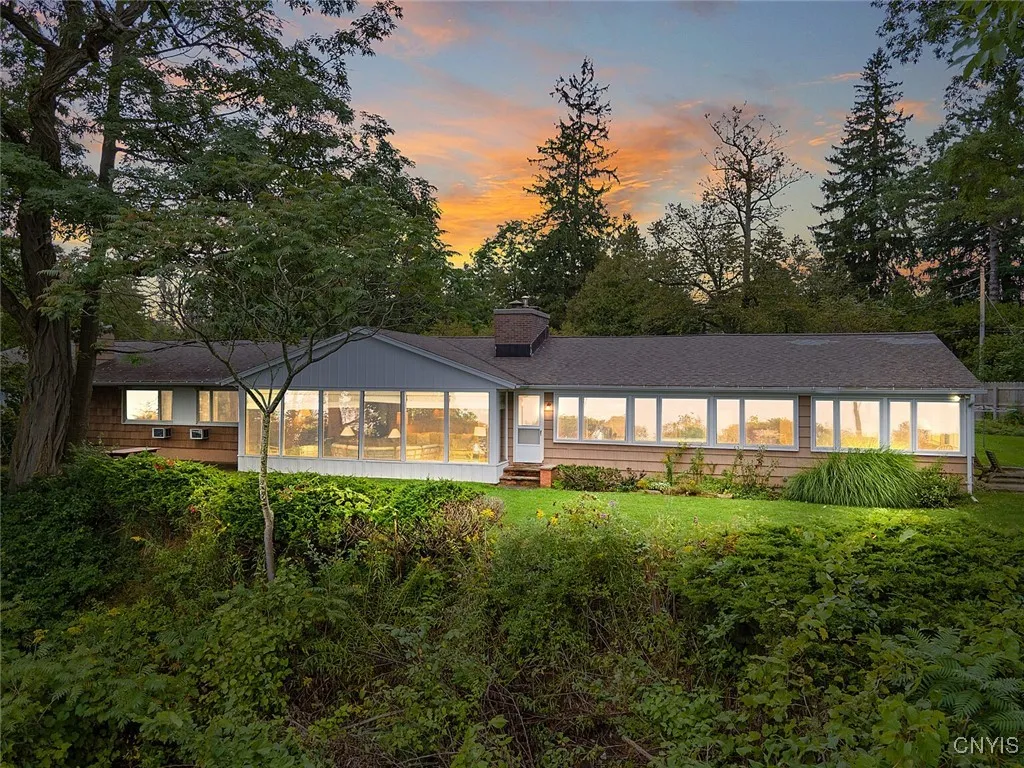 Cazenovia Lake’s Signature South-Facing Waterfront Available for the first time in three generations, this property is unlike anything else on the lake. Set on nearly an acre with an extraordinary 495 feet of owned frontage, it enjoys unmatched privacy in a quiet east-side cove while capturing rare, uninterrupted southern views—from the full sweep of the lake to the rolling hills along Route 13. The approach to the home delivers a dramatic reveal: sightlines pass through the dining room’s bay window and continue to expansive commercial-pane windows in the living room, perfectly framing the length of the lake. Inside, the sprawling mid-century modern ranch offers 5 bedrooms, 3 full baths, multiple living areas, and timeless architectural lines that are once again in demand. While well-maintained with thoughtful updates—new roof (2025), dock and hoist (2024), boiler (2017), and newer kitchen appliances (2022)—many spaces retain their original character, offering a canvas for personalization. For some, this will be the ultimate opportunity to preserve and celebrate an iconic design in a setting that cannot be replicated. For others, it’s the ideal site to create a legacy estate worthy of its irreplaceable location. Either way, properties like this come along once in a lifetime—if ever.