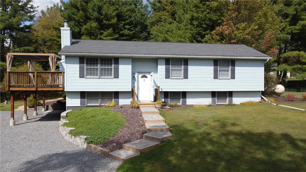 Welcome to this beautifully maintained split-level home, nestled in a peaceful, private setting in Danby, within the Ithaca School District. Set far back from the road on over an acre of land, this home offers a serene retreat with mature landscaping and plenty of space for relaxation and recreation. The home features 3 spacious bedrooms and 2 full baths. A cozy wood-burning fireplace in the living room adds warmth and charm, making it the perfect place to unwind. The downstairs provides space to spread out with a flex room, second living room or even a home theatre space. Step outside to the beautiful deck with a stunning pergola that conveys, a perfect spot for outdoor dining or simply enjoying the tranquil views of the neighboring pond. The private, expansive yard is ideal for gardening, play, or just taking in the natural beauty that surrounds you. With more than an acre of space, mature trees, and plenty of privacy, this home offers a peaceful and secluded lifestyle while only 5 minutes from Ithaca College and just a few minutes more to Downtown Ithaca. This charming home is the perfect blend of comfort, privacy, and natural beauty—don’t miss out on the opportunity to make it your own!