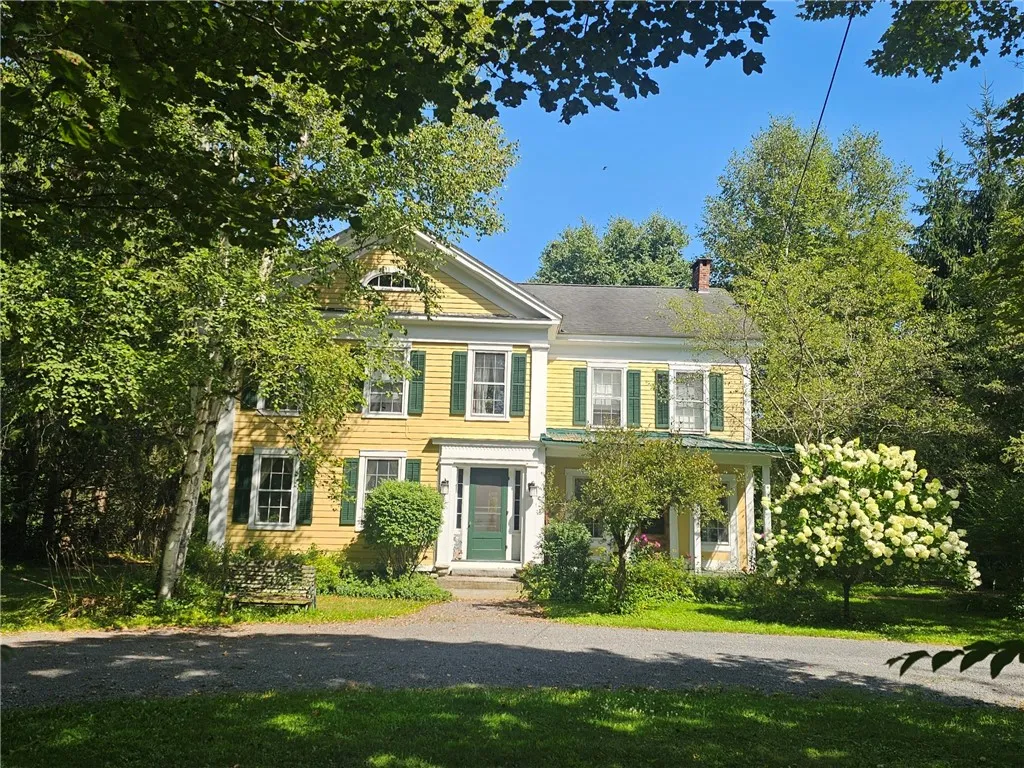 Nestled on the shores of Oaks Creek in historic Toddsville, you will find this lovely circa 1838 colonial home. Historically owned by Rufus Steele, who was part owner in the Union Cotton Mill as well as the Toddsville general store. The current owners have kept the beautiful classic features, such as wide pine floors and period style molding. The replica tin ceilings and vintage-like lighting add to the nostalgic charm. In conjunction with a modernized stunning kitchen, including painted wood cabinets, honed granite counter tops and stainless-steel appliances. More added features include built-in bookshelves and storage cabinets, updated bathrooms and lighting. A fun bonus feature in the yard, is the chicken/duck coop! All fenced in and ready for some chicks or ducklings to make their way to the creek for a swim! Oaks Creek is a fantastic water feature for stellar fishing, raft floating, or just sitting by the peaceful scenery! This wonderful home has many room options to fit your lifestyle needs, including the possibility for a 1st floor master bedroom. The 1st floor currently includes a renovated open kitchen, eat-in dining area; with a woodburning fireplace, formal living room with built-in shelves, dining room with wet bar, family room, artist studio, and a sun-filled 3 season porch leading out to the expansive paver patio for summer dining while gazing at Oaks Creek! Upstairs you will find 4 bedrooms, 3 bathrooms and a spacious laundry room. Plenty of storage in the walk-up attic. Come take a look at this classic home that has improved with age!
