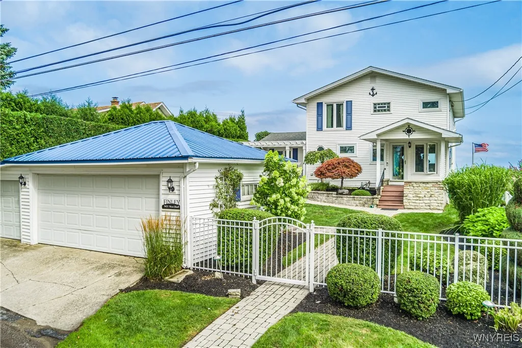 Waterfront with water access! Fabulous home situated in a park like setting on Lake Ontario with picturesque views. 3 bedrooms, 3 full bath home. Open kitchen with granite counters, breakfast bar and newer appliances. Refrigerator 2023, Bosch dishwasher 2022. Dual fuel down draft stove-gas top electric oven. Family room, dining room, glassed in sunroom with new windows 2023. Views from every room! 1st floor laundry w/ small dog automatic door- dog collar stays. 1 full bath 1st floor and 2 full baths on the 2nd floor. 3 bedrooms - primary bed. California closets and shelving. Bath w/ walk-in shower and double sinks. Finished basement with glass block windows. Radon mitigation system. Pool table for sale. (2) 40 gallon HWT, Rheem, 2015, GE 2014. Furnace serviced yearly. Whole house generator 22KW. Plenty of storage. Fenced in yard- back porch, front porch! Sprinkler system. Permanent landscape lighting system. 3 car garage w/ metal roof 2021. Yard expands across the street with Amish made shed. Shore line protection-2019. Stairs to lake as well as deck. Pier system-connects 2 piers together which is currently on the deck.