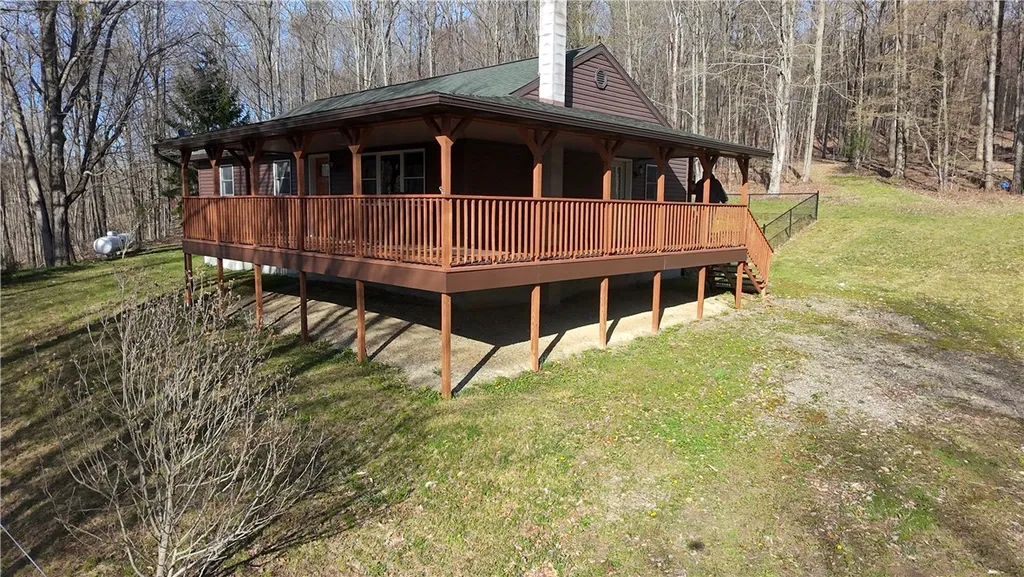 Nature lovers' retreat in a secluded location! Relax on the wrap-around and covered front porch, or enjoy hunting or walking the trails on this almost 8 acre parcel! There is a nice field in the back of the home, furit trees abound, and wifi/cable is available. Living room and bedroom furniture can be included if you desire. Television is negotiable as well. Fenced in area in the back. The garage has a separate electric service and an electric vehicle charging station!