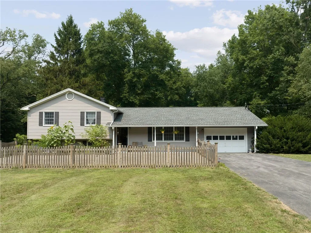 Stylish and versatile, this 4-bedroom, 2-bath home in Lansing sits on a picturesque 1.63-acre lot with a perfect blend of sun, shade, and charm. A welcoming formal entryway opens to a dining room with hardwood floors and a breakfast bar that connects seamlessly to the kitchen featuring Corian countertops, stainless steel appliances, and an induction stove. The sun-filled living room overlooks the partially fenced front yard and creates a cozy yet open feel. Upstairs, you'll find three bedrooms, two with hardwood floors, including a spacious primary with access to a private deck via sliding glass doors. The walk-out lower level offers a flexible layout with the 4th bedroom, currently being used as a family room, but perfect for guest space or office as well, a full bath plus a laundry room. Efficient mini splits provide heating and cooling throughout. Enjoy the peaceful park-like backyard with a patio, fire pit, whimsical wooded setting, a small creek, and a 24x24 barn/workshop with electric and a woodstove. Additional perks include a fenced dog yard, paved driveway, and an oversized 1-car garage with an epoxied floor and built-in storage. All just minutes from Cornell, Ithaca, Lansing Schools, the airport, and more!