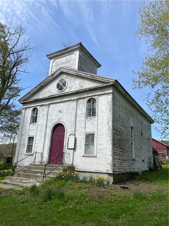 Nestled in the picturesque Finger Lakes region of New York, this charming 1840s church offers a serene retreat just 30 minutes from Ithaca, surrounded by rolling hills and scenic farm roads. Steeped in history, this timeless structure exudes character, with original windows and details. While in need of thoughtful renovations, this unique property brims with potential for creative transformation. Whether you dream of crafting a one-of-a-kind residence, an artist studio, or a private get-a-way, the open layout and soaring ceilings provide a blank canvas to bring your vision to life. The church's tranquil surroundings enhance its charm, making it an inspiring haven. This is more than a property it is an opportunity to create something truly special in the heart of one of New York's most beloved regions.