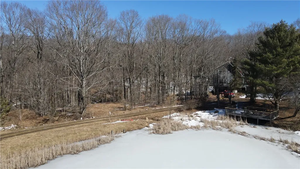 Imagine waking up to the sound of streams and living on 75 acres of your own land—this secluded retreat in Alfred, NY, could be your perfect escape! Welcome to a beautiful 3-bedroom, 1-bathroom home on 75 acres in Alfred, New York. This house has a charming rustic style with tall cathedral ceilings that make it feel spacious and welcoming. The floors are hardwood and tile throughout, giving it a clean and polished look. The kitchen has been updated with granite countertops, making it a great space for cooking or baking. Large windows offer views of streams flowing down the mountain, visible from several rooms. At night, you can open the windows and listen to the soothing sound of the water as you drift off to sleep. A front porch overlooks the property, providing a peaceful spot to relax. The basement is mostly finished with slate flooring and a walk-out entrance, offering extra space that could be used as another bedroom if needed. On the property, there’s a separate barn that’s been converted into a 1-bedroom, 1-bathroom cabin. It doesn’t have a kitchen yet, but adding one would be simple. The cabin features knotty pine ceilings for a cozy, woodsy feel and concrete flooring for durability. A new hot water heating system has been installed, so with a little finishing work, it could become a comfortable second home or guest space. Between the main house and the cabin, you’ll find a pond with a deck—a lovely place to enjoy a morning coffee or just unwind. The 75 acres are full of diverse landscapes, including streams, hardwood and soft pine trees, and trails for exploring. Tucked away in the woods is a hidden rustic cabin, perfect for someone looking to create an off-grid retreat with a bit of effort. The area is also great for hunting, with deer, turkey, and bear nearby. Alfred, NY, is a small town home to Alfred University and Alfred State College. Plenty of outdoor activities like hiking and fishing are nearby. This property offers a rare chance to enjoy privacy and nature in a place that feels like home. ADDITIONAL INFO: All GMO and timber rights convey. 1836 sqft house. 2 miles to Alfred, 30 minutes to Geneseo or Corning, 1 hour to Rochester.