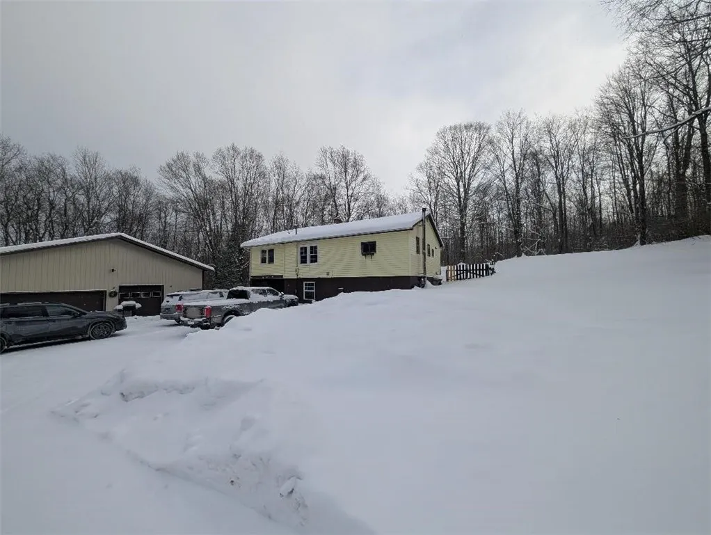 Welcome to 6434 Curtin Rd., a charming country home that feels like a peaceful escape the moment you arrive. Tucked into a private location on approx. 1 acre of land, this cozy retreat sits perfectly between Skaneateles and Cortland, offering easy access to the area's top attractions while still feeling quiet and surrounded by nature. Inside, the home offers an inviting open layout designed for comfort. The lower level, where the main entrance is located, features a woodstove, full bath, laundry/utility area, bar, and living space. Upstairs you’ll find the main living area where the living room, kitchen and dining area flow together. A large primary bedroom allows the option to convert it into 2 bedrooms. The roomy second bedroom and bathroom are located on the opposite end of the living room. Picture windows provide a view of your front yard. New back deck is accessible from the dining/kitchen area and the primary bedroom where you will enjoy a comfortable outdoor living space. A 40’ x 40’ pole barn features a wood burning furnace, electricity, and tons of space for parking, storage, a workshop, etc. Hundreds of acres of state land are just steps away from this property, and snowmobile trails are extremely close for easy access in all directions.