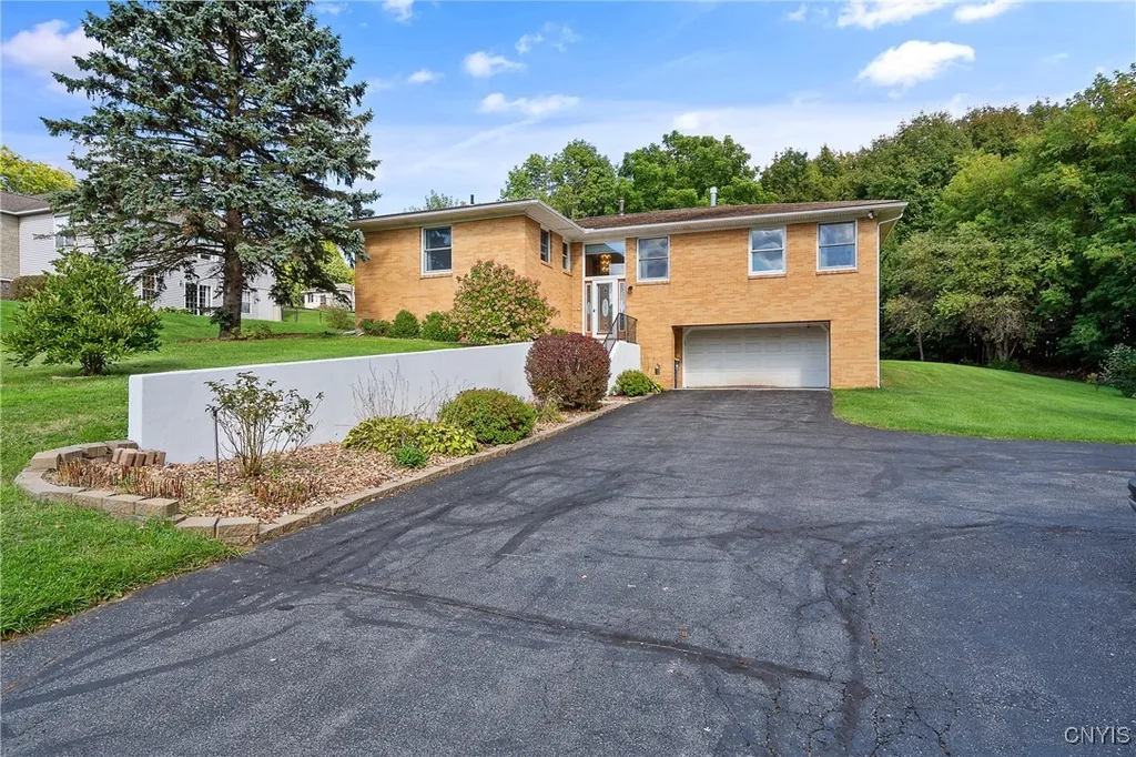 Charming best describes this spacious residence offering the perfect blend of country living and modern amenities. This well cared for brick home is nestled on 1.33 acres, providing a serene escape from the city. Upon entering, the 2-story foyer welcomes guests to the bright and spacious living room with gas fireplace. Hardwoods flow throughout to the stunning updated stainless steel and granite kitchen with breakfast bar, beautiful cabinetry, pendant lighting, abundant counter space, and a Jenn Aire gas range. Enjoy the slider off the kitchen to the expansive deck overlooking the lush private backyard. The unique double-sided gas fireplace enjoyed in the living room, warms the kitchen as well. The rooms are spacious with ample closet space. New owners will love the convenience of the first-floor laundry. The primary bedroom features a full bath and double closets. This home offers energy efficient Anderson Windows and a durable 40-year architectural roof. The large walk out basement enjoys a nicely finished family room - office, that's the perfect at home work space and a great area for casual relaxing watching your favorite shows. It's worth noting that this home was originally a 4-bedroom residence and could be converted back to its original bedroom configuration if desired. This truly is a must-see property for anyone looking for a low-maintenance exterior home with charm and space. You'll love the peaceful views from your large deck offered in the private, park-like yard, with no neighbors directly behind. The oversized garage is another great feature to be enjoyed! It's a Must-See for West Genesee School District buyers!