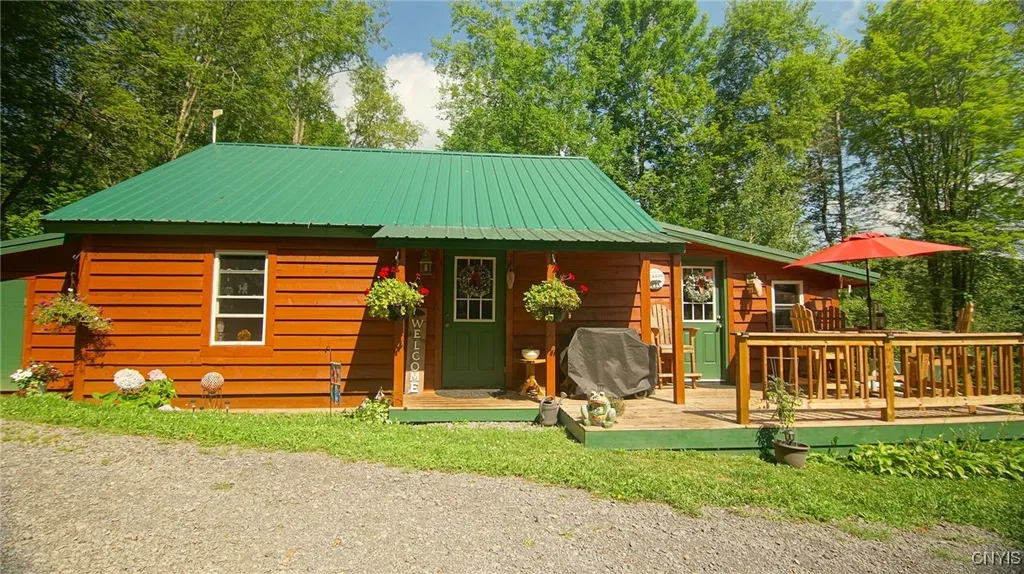 Year-Round Off-Grid Living on 14.7 Private Acres! Nestled on 14.7 acres of pristine land, this charming custom built 2-bedroom, 1-bath wood cabin offers the ultimate escape into sustainable living. Embrace off-grid tranquility with solar power, a solar battery system, propane heating, and a backup generator. The solar system is meticulously maintained. Inside, a warm, all-wood interior welcomes you with a cozy downstairs bedroom and an inviting loft bedroom upstairs. Enjoy a fully equipped kitchen, comfortable dining area, and relaxing living room. Outside, a storage shed (with riding lawn mower included!), detached garage with workshop. Relax on the back deck, enjoy the picnic area, and explore nearby Black Creek State Forest and ATV/snowmobile trails. Complete with a private well, septic system, signal booster, Wi-Fi availability, and a wealth of extras, this surveyed property on a maintained road offers unparalleled access to the beauty of the Adirondack Park. Don't miss your chance to own this unique slice of paradise!