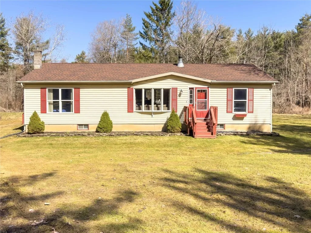 Delayed negotiations until Wednesday April 2, 2025 at noon. Calling all nature lovers and sportsmen! A 13 acre slice of heaven has fallen to Earth at 6861 Bishop Rd in the Town of Conesus New York. The land features a couple of streams, two small ponds and a wetland at the southeast corner of the property to attract the local fauna (think deer and turkey) and flora. Still plenty of acreage that is high and dry with both conifer and deciduous forests covering most of the property. Turnkey ranch style home with a full walkout concrete poured basement for a workshop or refinish for more living space. Roof is 10 years old and was a tear off. Wood-burning fireplace in the living room a pellet stove in the basement to supplement the propane boiler for the baseboard central heating system. Deck off of dining area overlooks backyard green-space. 2 generous sized out buildings to house your boats, R Vs and landscaping equipment. Come see what we have to offer at our open houses on Saturday 3/29 and Sunday 3/30 from 1-3pm.