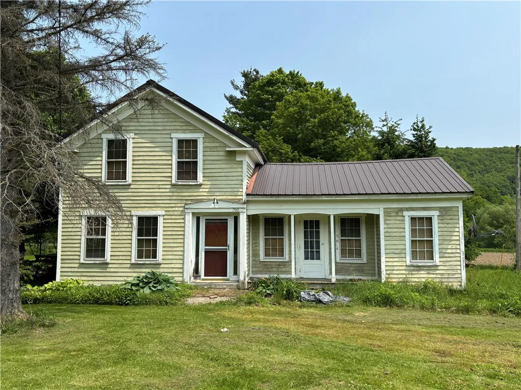 Affordable country home on 0.72 acres with plenty of potential and functional features. This farmhouse offers an eat-in kitchen with movable center island, plenty of cabinets and the washer/dryer, tucked to the side for 1st floor convenience. The main level includes a carpeted living room with sliders to a large back deck, a full bath, family room which could be used as a first floor bedroom or formal dining room. Plenty of room for one level living if need be and convenient with the full bath on the main floor. Upstairs you'll find an open space with two separate sleeping areas, a large closet, and a center half bathroom. Outside is the detached 2-car garage with a cement floor, remote doors, and a walk-through to the backyard. There is an attached 2 story area that could be an office or converted into living space for income potential. The main floor has shelving for storage and upstairs and open loft area - great for an artist or visions for an apartment. Both home and garage have metal roofs. The yard is level and large enough for flower and veggie gardens or a great place to enjoy the outside! This home is perfect for a buyer ready to roll up their sleeves and get to work! Conveniently located within a few miles from I88 access to Oneonta or Albany and over the hill to Cooperstown!