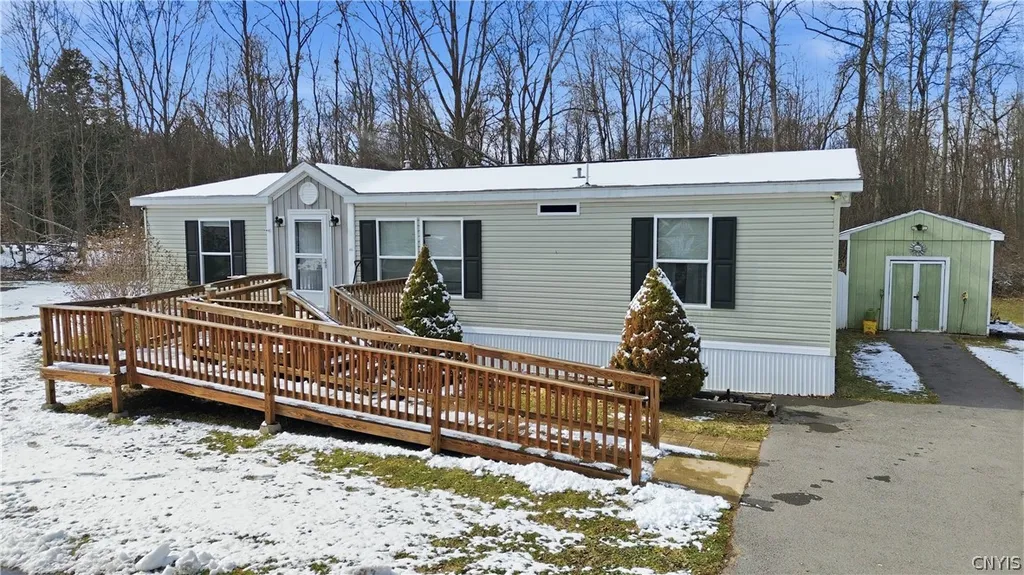 Welcome to 833 Cinko Drive in Ilion—where comfort, affordability, and easy living come together! This well-maintained 3-bedroom, 2-bath home offers a spacious and functional layout designed for everyday living and entertaining alike. Step inside to a bright, open living area that flows effortlessly into the generously sized eat-in kitchen, complete with ample cabinetry and counter space—perfect for hosting or enjoying quiet nights at home. The primary bedroom features its own full bath, offering a private retreat, while two additional bedrooms provide flexibility for guests, a home office, or hobbies. Outside, you’ll love the added bonus of your own yard space along with a rear deck ideal for relaxing, grilling, or soaking up the seasons. The handicap-accessible ramp ensures convenient entry, and the storage shed provides valuable extra space for tools and outdoor equipment. Located in a well-kept mobile home park, this property offers low-maintenance living without sacrificing space or comfort. Whether you're looking to downsize, purchase your first home, or invest, this is a smart move at an attractive price point.