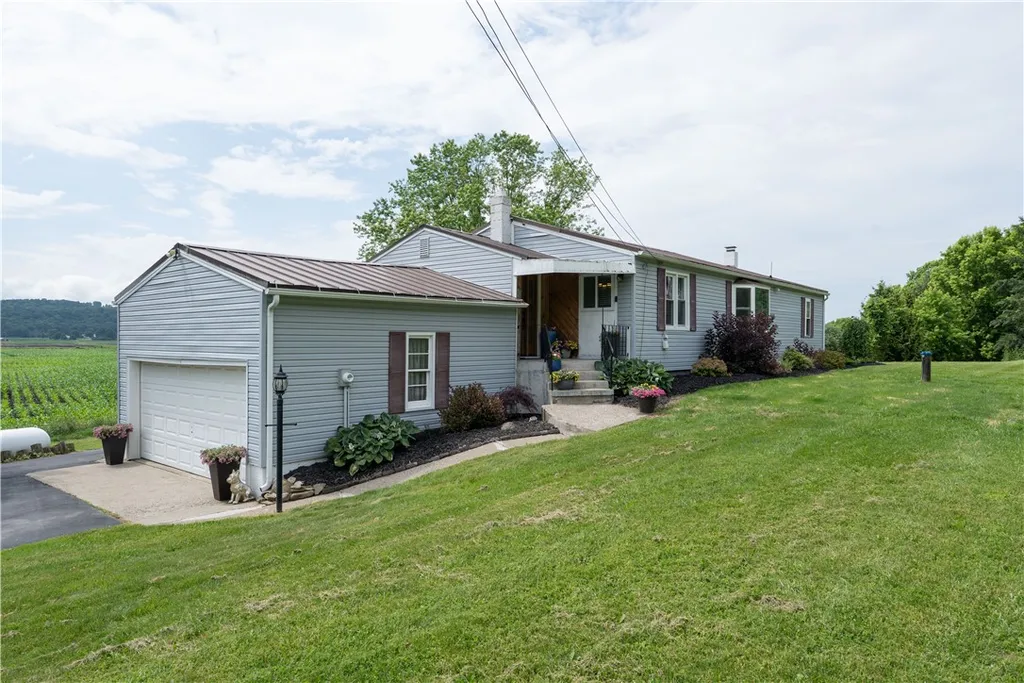A stylishly remodeled ranch located just 1 mile from the Village of Arkport! This updated 3-bedroom, 2-full bath ranch is full of modern upgrades and charm. Enter through a new 3-panel glass front door into a stunning custom kitchen (2024) featuring two-tone cabinetry, Calacatta quartz counters, white glass Bespoke appliances, tile backsplash, skylight, and recessed lighting. The formal dining room and bright living room feature refinished hardwood floors and a large bay window. Down the hall: an updated full bath, a bedroom currently being used as an office, a spacious second bedroom and a primary suite with a full bathroom & tiled shower. The walkout basement is partially finished with new flooring, drywall, and recessed lighting—perfect for extra living space. Off the kitchen, step outside to a 20’ x 40’ deck with beautiful panoramic views. Recent updates: New well & Culligan water system (2025), 200 amp panel (2025), and central A/C (2022). OPEN HOUSES: Saturday, 6/28 from 1-3PM, Tuesday, 7/1 from 4:30-6PM. DELAYED negotiations until Wednesday, 7/2 @ 5:00PM.