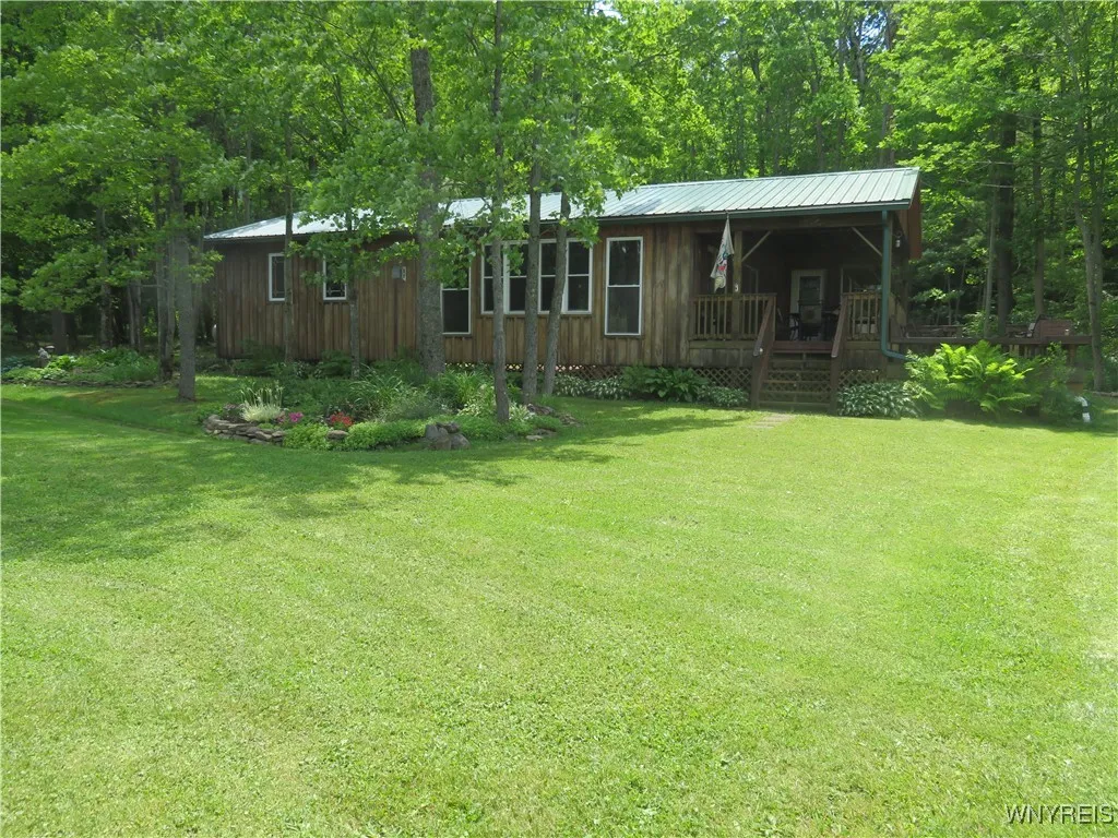 Absolute Serenity awaits you in this 2-bedroom 2-bath meticulously maintained country cabin featuring large open living, dining kitchen area with a walk-in pantry. The home show cases larch, knotty pine and bamboo woodwork throughout. The cathedral ceiling flows from the living area into the primary bedroom with ensuite bath. Windowed walls bring the outside in. Sliding glass doors lead you to covered deck where you can entertain or just enjoy the tranquility of Mother Nature rain or shine. Sun worshipers can bask in the sun on the lower-level deck. This 12-acre parcel has so much to offer. A two-acre pond which is stocked with bass, blue gill, koi and grass carp. Enjoy all of nature's views from the 10'X 12'screened room. Hunt or fish without even leaving your own property. The owner has established walking trails and a peaceful meditating area. The 2-story barn/garage has a concrete floor, workshop space, storage and room for your car. Upstairs you'll find a Man Cave or possible craft area. Many furnishings in the home are negotiable. The property abuts state lands and is only minutes away from Rushford Lake. If you're looking to escape busy city life living this property offers all of the peace and quiet, you could ever want.