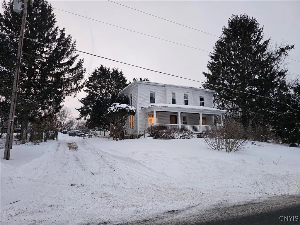 Country home set on 2.1 acres in the Weedsport School District, located in an agricultural district and offering 2,156 sq ft, 4 bedrooms and 2 full baths. Situated on a quiet country road, set back from neighbors and positioned on a hill for added privacy. The adjacent 1 acre is buildable, providing the option to parcel off, build, or maintain privacy. Updates include new insulation, replacement vinyl windows and a complete roof tear-off with a metal roof installed 7 years ago. Furnace, septic and well are well maintained, with an option to connect to public water. Features original woodworking and stained-glass windows, plus multiple outbuildings for storage or hobby use. Schedule your showing today, seller is motivated! Public Open House Sunday 3/1, 12-2pm!