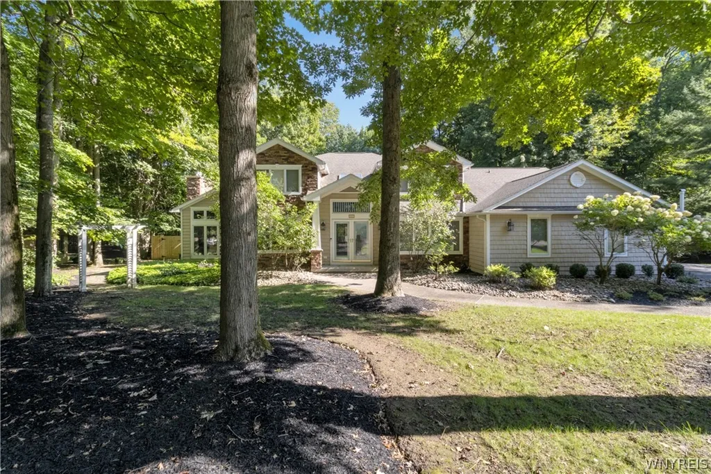 Welcome to 88 Middlebury Road. This expansive and beautifully appointed Eagle Heights Contemporary Colonial offers the perfect blend of privacy, luxury and modern convenience. Exquisite curb appeal meets architectural distinction in this expertly designed residence. The dramatic two-story foyer transitions into a wealth of main-level living spaces. An inviting, great room boasts soaring ceilings with updated skylights (2019), hardwood floors and a custom stone gas fireplace with built-ins. Entertain with ease in the gourmet kitchen with an abundance of granite counters and solid wood cabinetry, a large island with a 6-burner Wolf cooktop, built-in double ovens and a wet bar. Updated sliding doors (including a custom 12-foot door) and four new rear windows (2020) provide bountiful natural light. The formal dining room features more beautiful hardwood and flows seamlessly into a living room with a second gas fireplace. A home office further enhances the functional floor plan. A first-floor bedroom with an en-suite full bath provides the perfect space for guests or in-law setup. The laundry room with creative storage options and remodeled half bath complete the main floor. The second level offers a primary bedroom retreat with generous closet storage and a spa-like bath with a walk-in shower and soaker clawfoot tub in addition to three large bedrooms and a third full bath. The walk-out basement with a multi-purpose living area and home gym provides over 1,500 additional square feet of finished living space. Experience nature on the large multi-level deck and relax in the Wellis hot tub (2023) overlooking the backyard with a new privacy fence (2025). Capital improvements including a permanent gas generator, an architectural roof, new hybrid heat pump furnace for the lower level and a 50-gallon hot water tank (2025) provide immediate peace of mind. A three-car attached garage with an epoxy floor in the two-car section (2019), central air and a rebuilt chimney add to the property enhancements. Located in Top Rated Orchard Park Schools (Ellicott Elementary) and minutes to the villages of Orchard Park and East Aurora. A rare opportunity to own a truly exceptional home.