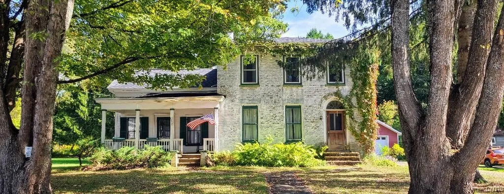 History and charm showcases this beauty located at 8818 State Route 28 Poland, New York. Circa to the 1820's and formally known as the Royal Grant Farm comes an exceptional opportunity to buy this family owned property for the last 60 years. The stately stone exterior, cozy front porch, perfectly landscaped yard that provides privacy and almost an acre of land reminds you why you love old houses. This homes interior is exceptional to every room with a unique floor plan as it graces as you walk into the entryway noticing the stained glass windows, large staircase, and focal points of the living room with it's ambience fireplace and large sitting area with the exquisite formal dining room that you can picture every family gathering in for so many decades. The newly renovated kitchen sits right off the dining room with an additional laundry room and walk in pantry. The home provides you with 3-4 bedrooms with a bedroom on the first floor with a full bath, a family room for extra space, and a walk up attic area that was used as a bedroom but creates that bonus area that you maybe seeking. Grand second floor exhibits 2 large bedrooms and another full bathroom. Exterior provides you with a 3 stall garage with electric and a shed that could be an adorable greenhouse. It is a must see to all that appreciate history!