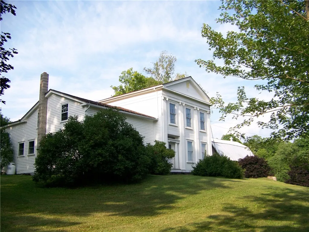 Location-Location, Minutes to Delhi-Oneonta-I88-This 1850’s Greek Revival Home is Nestled in the Hamlet of Meridale NY and sits on 5 plus Acres with a Three Story Barn. The Large Solid Home Boasts Tall Ceilings, 3Bedrooms, 2Bathrooms, A Large Eat-in Kitchen, ample sized mudroom, Dining room, Living room and Den. Some special features throughout the property include wide plank wood flooring with walnut in the dining area, oversized first floor bathroom(antique corner hutch stays), original stairs and railing to second floor, light fixtures and more. Outside the property has a long sweeping circular driveway, newer roof, established garden area, apples trees, perennials, chicken coop and the large Barn with 3 levels. Several updates throughout including newer roof, foundation, heating system & more, this property has great bones with plenty of original charm and character waiting for you with some TLC to make it a perfect place to call home. This property can easily accommodate horses, chickens, and farming, whatever your dream is. Make your appointment today it is sure to capture your heart.