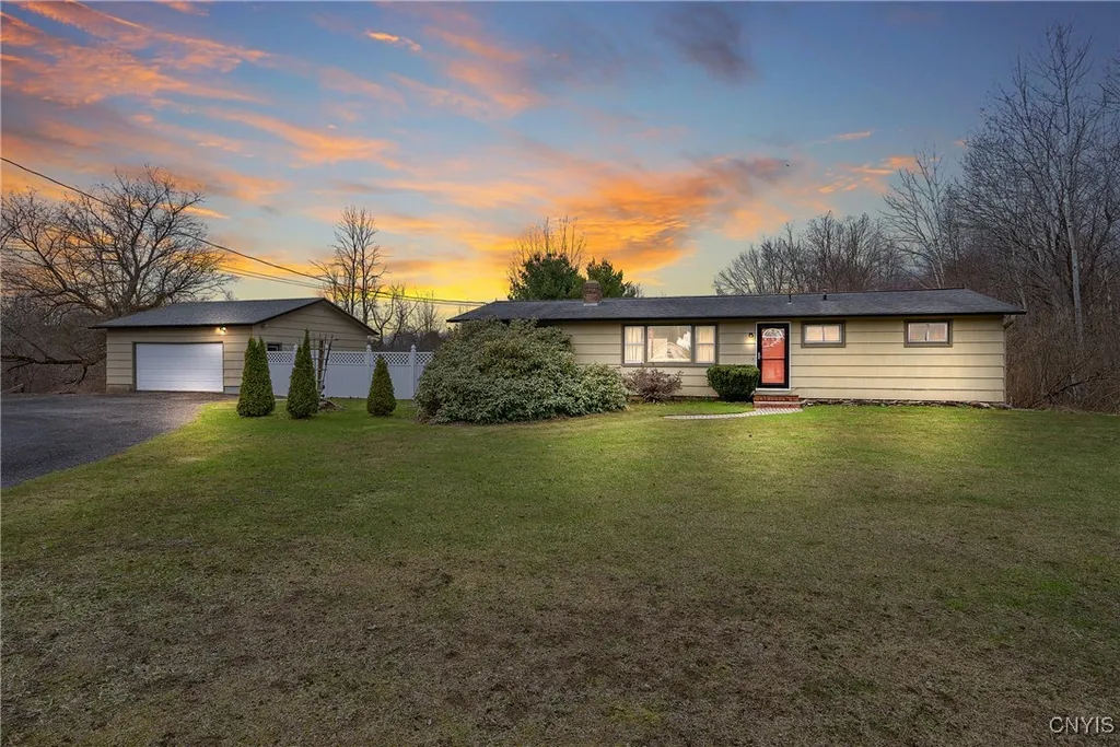 Welcome to this beautifully updated 3-bedroom ranch, offering comfort, charm, and a backyard oasis! Featuring gleaming hardwood floors throughout, this home boasts a newly remodeled kitchen with solid surface countertops, a stylish glass backsplash, and stainless steel appliances. A slider off the kitchen leads to a stunning deck that overlooks a private backyard retreat. Enjoy two cozy living spaces—the family room includes a wood-burning fireplace, perfect for relaxing or entertaining. The finished walk-out basement is set up as a game room, complete with an 8' slate pool table and a second slider opening to the backyard, where you’ll find an impressive 18x36 inground pool. Every window and door has been replaced, including sleek black storm doors with built-in screens. The beautifully landscaped yard backs up to a serene fishing pond and includes two apple trees, a pear tree, grapevines, maple trees ready to tap, and more. Additional updates and improvements include: a brand-new kitchen, maintenance-free seamless gutters, reverse osmosis drinking water system, updated game and laundry rooms, Comfort Windows, new vinyl gate, a new well pump and pressure tank, and a newer boiler. This one-of-a-kind property blends modern updates with natural beauty—don’t miss your chance to call it home!