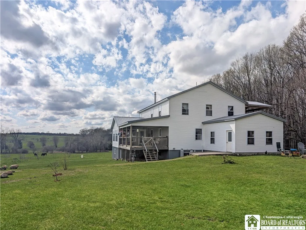 Private countryside retreat with timeless farmhouse charm. Built in 2021, this expansive home is perfectly situated on 15 scenic acres, offering breathtaking views of the surrounding countryside and unmatched peace and privacy. Set far back from the road, the property provides a tranquil setting complete with a picturesque creek flowing behind the home. Inside, the first floor boasts an abundance of open living space designed for both everyday living and entertaining. A spacious kitchen serves as the heart of the home, featuring a large walk-in pantry and plenty of room for gathering. This level also includes a full bathroom and a convenient first-floor bedroom, ideal for guests or flexible living arrangements. Enjoy the outdoors from not one, but two welcoming first-floor porches—perfect for relaxing and taking in the views. Upstairs, you’ll find three generously sized bedrooms, a full bathroom, a dedicated office space, a bonus room, and an additional storage room. Step out onto the expansive second-floor balcony to soak in the serenity of your land and the peaceful natural surroundings. Full basement with 2nd kitchen area and roughed in bathroom. Lots of space beyond the assessed sq footage, please refer to floor plans. The property is well-equipped for hobbyists, farmers, or those in need of extra storage with a substantial 60x36 barn and an additional 16x56 outbuilding. Property is being subdivided from larger parcel, additional acreage may be available. Property is wired, but not currently electrified and is on a wood furnace. With right offer seller could convert property prior to closing. Whether you're looking for a serene homestead, a hobby farm, or simply room to roam, this property offers the perfect blend of space, comfort, and rural beauty.