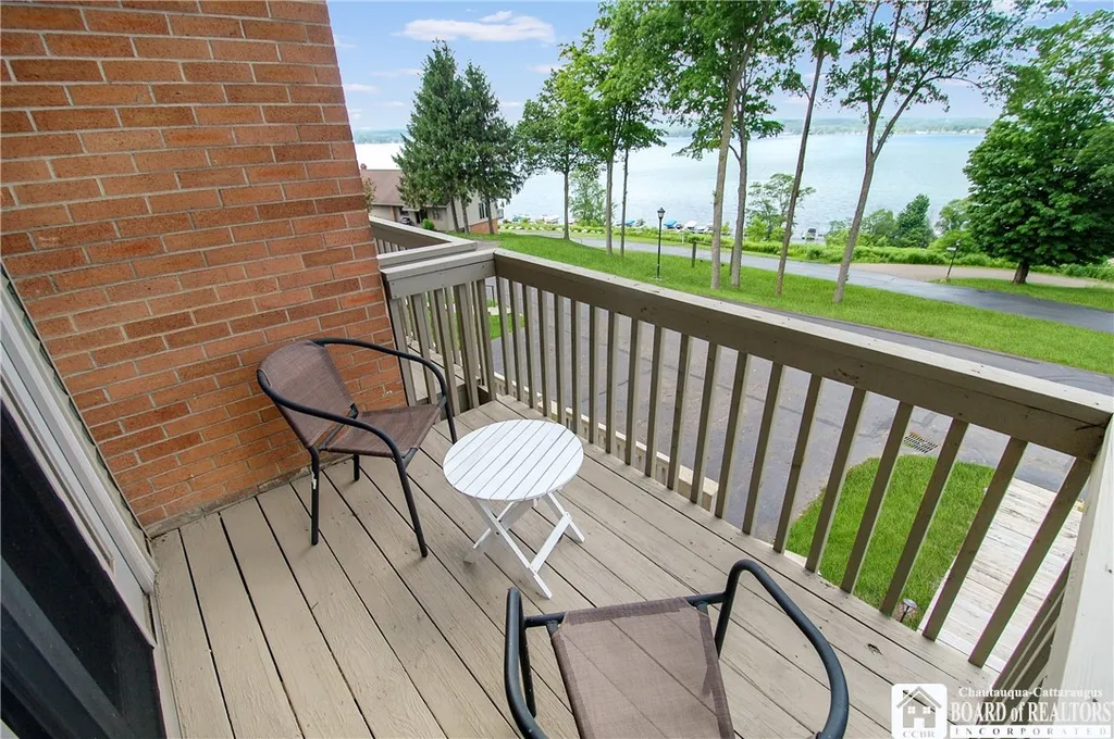 Welcome to your peaceful retreat on the shores of beautiful Chautauqua Lake. Nestled in the desirable Chautauqua Lake Estate community, this charming 3-bedroom, 2.5-bath townhouse offers the perfect combination of comfort, style, and lakefront living. With 1,155 square feet of thoughtfully designed space, this bright and airy home features sweeping lake views that create a stunning backdrop for everyday life. Step inside to find a welcoming main floor with a convenient half bath and kitchen that opens to a cozy living area—complete with a stone-surround fireplace, perfect for those crisp lakeside evenings. Upstairs, the second level offers two spacious guest bedrooms, a full bath, and a serene primary suite. Wake each morning to breathtaking water views from the comfort of your main bedroom, complete with a private en-suite bath for your convenience. The Chautauqua Lake Estates community enhances your lifestyle with a host of amenities, including a sparkling pool, tennis and pickleball courts, playgrounds, and a community dock for easy lake access. Whether you're seeking a year-round residence, a seasonal getaway, or a short-term rental investment, this home offers endless possibilities. Don’t miss this rare opportunity to embrace the lake life, where recreation, relaxation, and scenic beauty meet. This home is being sold partially furnished for ease of enjoyment.