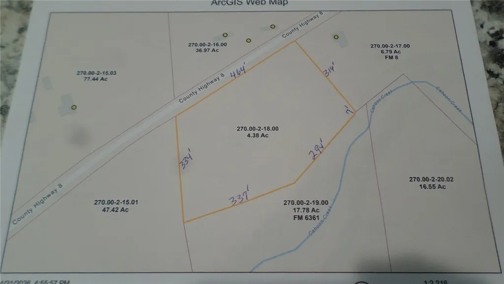 4.38 Acres on County Highway 8 in Butternuts. 464' road frontage. Mostly cleared with a few trees. No Zoning. Build your new home with southern view of mountain. Electric is close, not on property.