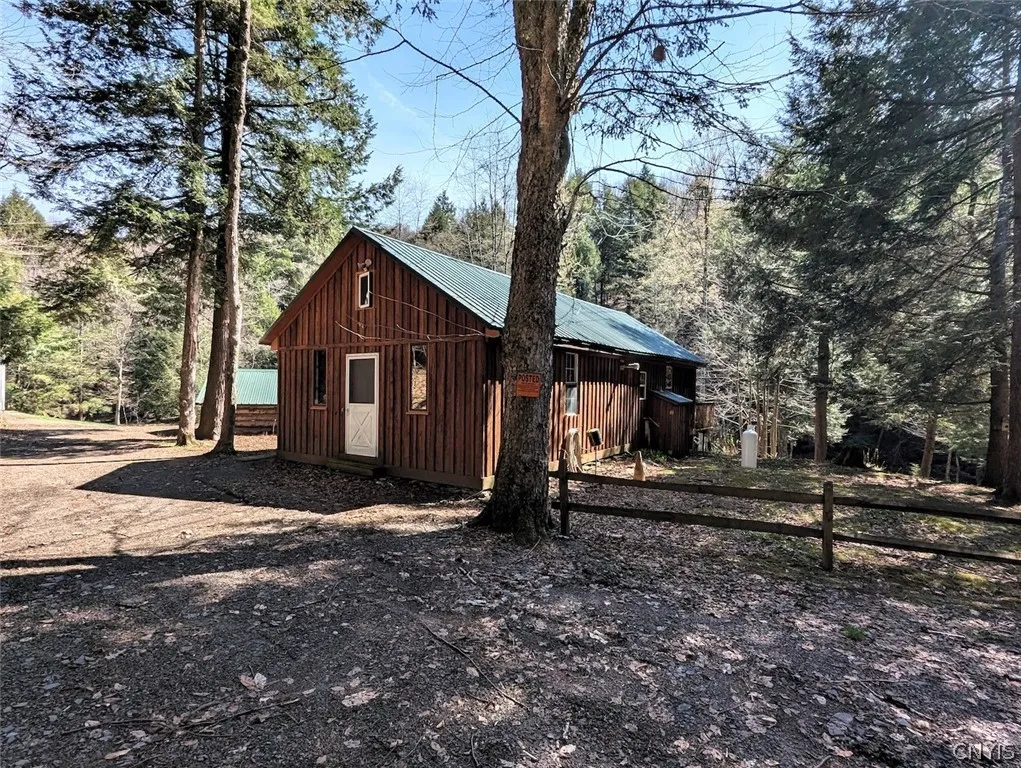 This 105 acre recreational retreat borders state land and consists of a furnished cabin, pole barn, pond, and stream located in Ossian NY, Livingston County. Escape to the end of a quiet gravel road where this secluded retreat awaits behind a gated entrance. A well-maintained driveway winds through the woods, leading to a private setting at the base of the property where a comfortable cabin overlooks a pond and a year-round stream that meanders through the land. Surrounded by timber and natural beauty, this setting offers the perfect balance of privacy and recreation. Furnished cabin features a functional open layout with a spacious living area ideal for gathering, a kitchen, full bathroom, and multiple bedrooms. A loft provides additional sleeping space for guests. The cabin is powered by a generator and is serviced by a gravity-fed natural spring offering a true off-grid experience without sacrificing comfort. A large 40 x 30 pole barn provides excellent storage for equipment, AT Vs, and recreational gear. Property includes two gated access points. A second driveway leads to a cleared campsite on the upper portion of the land perfect for additional guests or future development. From there, an internal road continues along the western boundary providing easy access to the rear of the property and directly to Rattlesnake Hill Wildlife Management Area. A highly diverse tract featuring miles of established trails and varied topography with a mix of hardwoods including oak, maple, beech, and hemlock. The combination of bordering state land, nearby agricultural fields, and dense cover creates exceptional habitat for wildlife making this an impressive hunting and recreational property. The adjacent WMA spans over 5,100 acres offering expanded opportunities for hunting, hiking, and exploring. Additionally, Stony Brook State Park is just 10 miles away. Despite its private setting, the property is conveniently located just one mile from NY-436, 10 minutes from I-390, and approximately 50 miles south of Rochester making it easily accessible year-round. An existing survey will be provided, and all rights owned by the seller will transfer to the new owner.