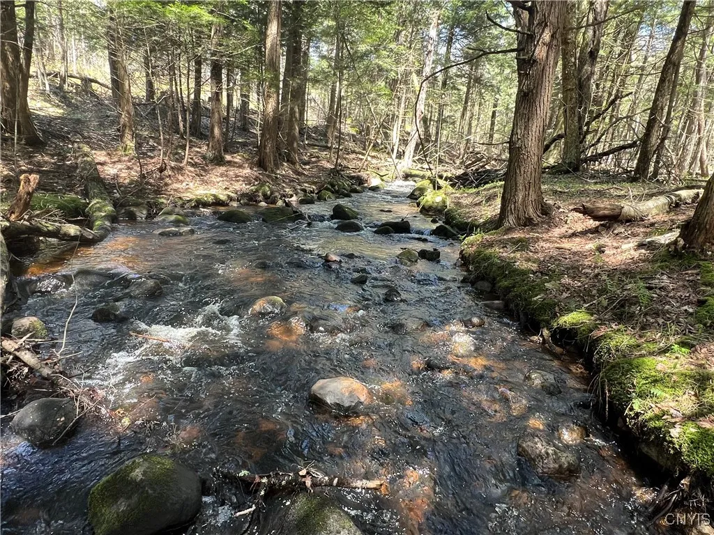 Pristine 5 plus acre parcel with over 350 feet along a cascading all year creek. This beautiful property features towering old growth evergreens and hardwoods as well as a standing stone fireplace that could be the centerpiece of your creekside gathering place. Secluded but not isolated with easy access from private drive. Minutes to thousands of acres of State Lands, Lakes and Rivers and just about 10 minutes from the Historic County Seat Village of Lowville in the heart of Lewis County. Ideal for your camp or cabin site in the woods or all year home in the country.